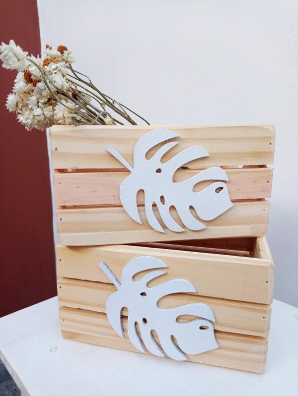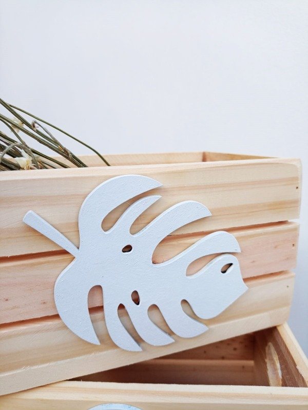 Hermoso Cajoncito de Madera de pino, con aplique de HOJA. (también en madera y color blanco)
