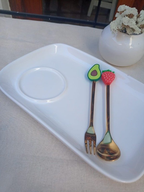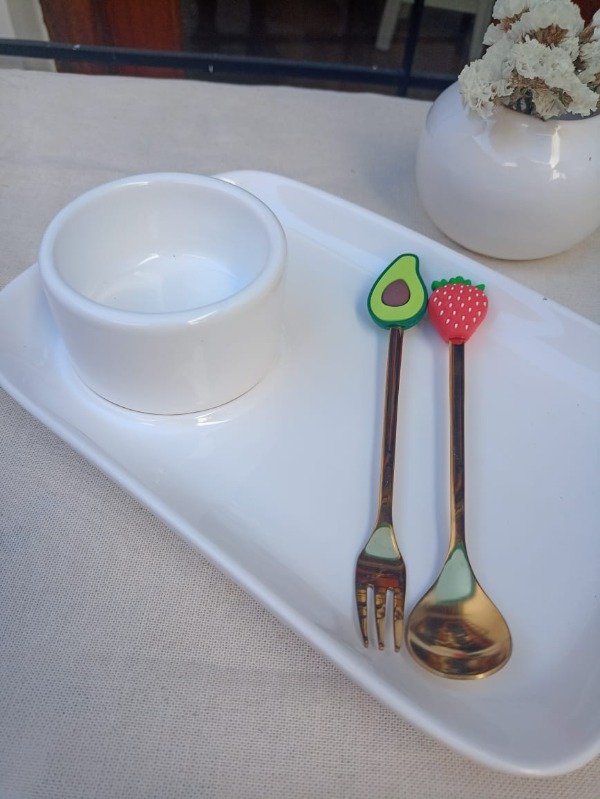 Hermosa bandeja de cerámica ,rectangular con borde y ranura para apoyar taza o cuenco (no incluido)