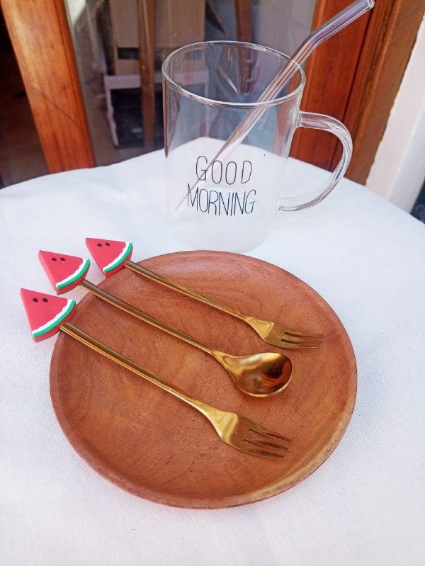 La cucharita sirve para taza alta, tipo submarino y el tenedor es de tipo postre