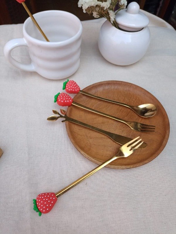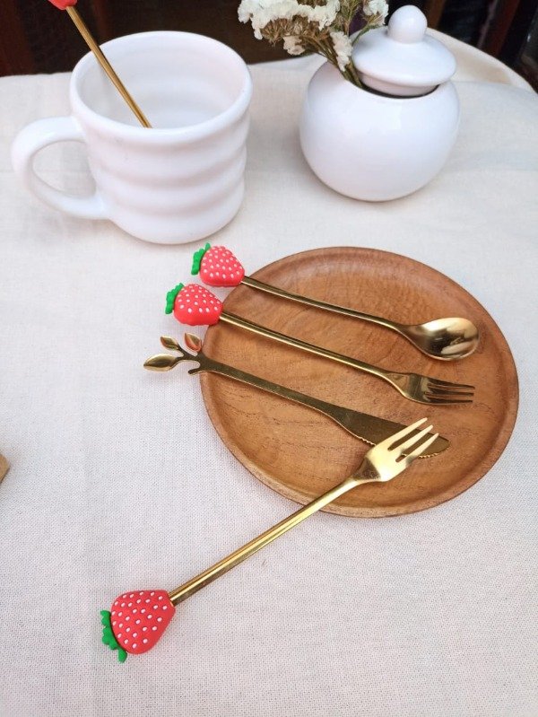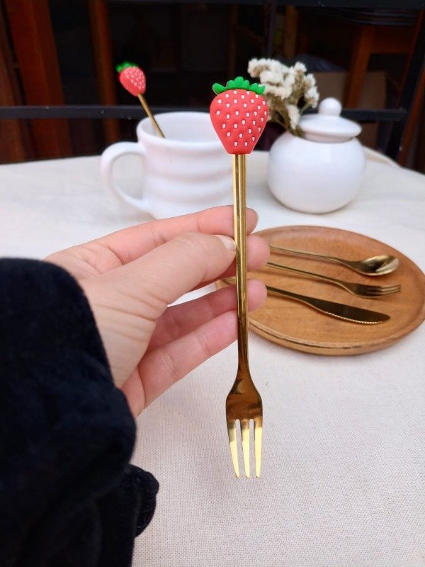 Hermoso, tenedor de acero inoxidable en color dorado, tipo de postre