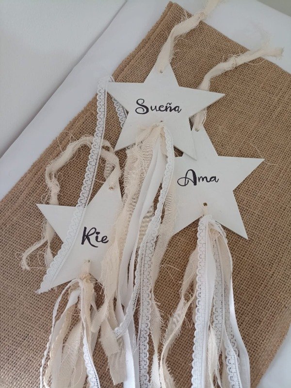 Colgante con frase y tiras de Tela.