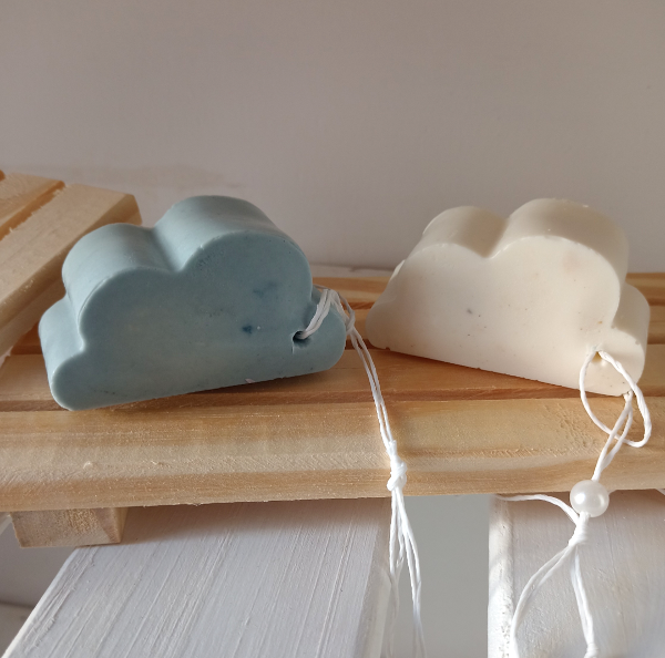 Jabones Nutritivos en nube con cordón para colgar.