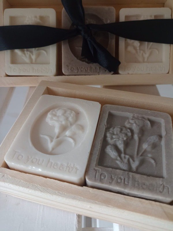 3 Jabones Naturales con base de coco, de 100grs aproximadamente. La presentación trae un modelo de cada