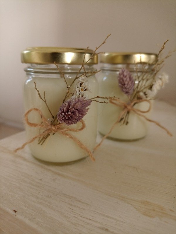 Velitas en frascos de 100ml, con tapa metalica y mecha simple.