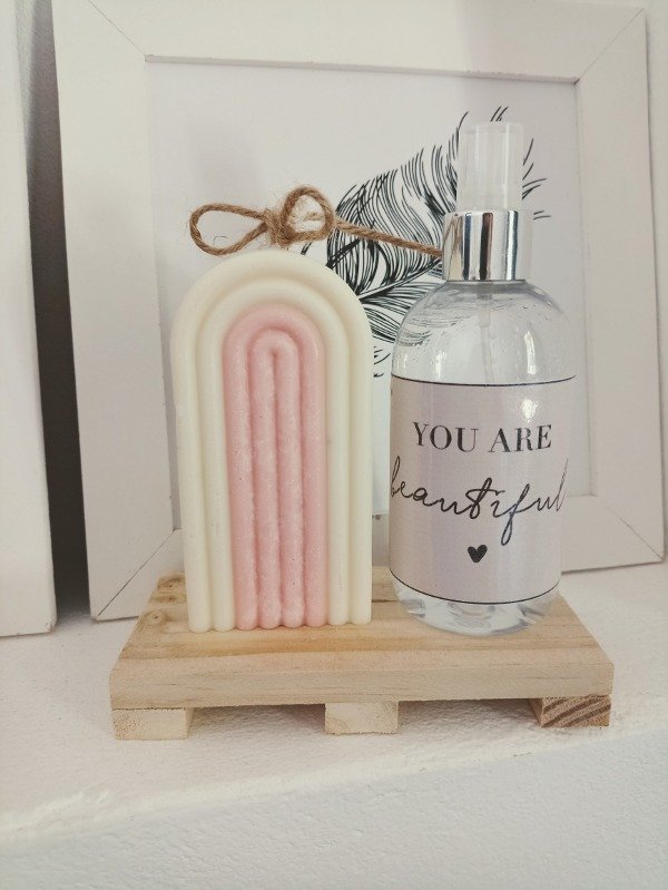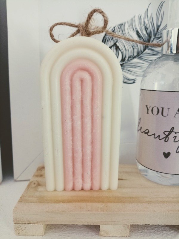 Vela de molde con forma de Arcoiris de 12 cm de alto x 6 cm de ancho.